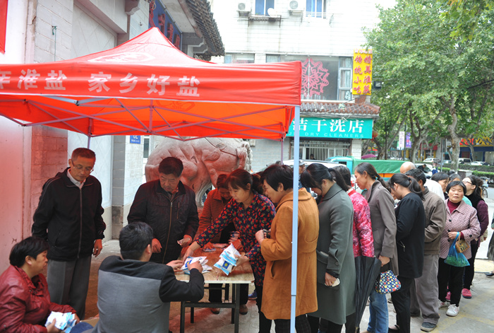 活动当天,井神股份公司还联合淮安区盐业公司共同开展了慈善销售活动,提供5000袋小包装食盐,低价售给贫困居民,同时向现场群众进行淮盐品牌宣传推广。活动受到淮安区群众的欢迎和好评,现场气氛热烈,展台前排起了数列长龙,5000袋食盐在短短时间内销售一空。 |