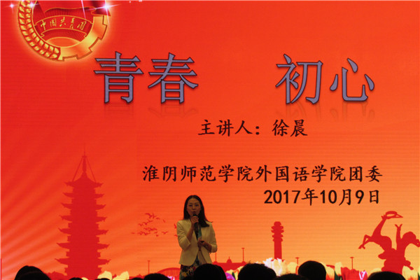 淮师外院共青团第一课:回顾历程,不忘初心中国共青团是中国共产党领导的先进青年的群众组织,为提高新生团员的思想理论水平和政治素质,增强对共青团的认同感、归属感,10月9日晚,外国语学院于图书馆多功能报告厅开展了共青团团课教育,由外院团委书记徐晨为17级新生授课。