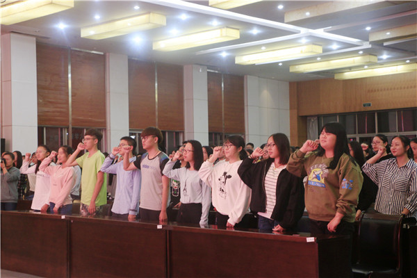 图为新生宣誓入团誓词 此次团课的开展不仅夯实了理论基础,使同学们明确了自己肩负的时代责任,也推动了团组织工作的规范化、制度化。