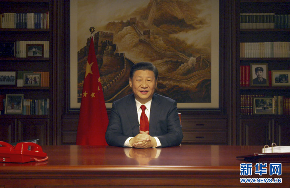 新年前夕,国家主席习近平通过中国国际广播电台、中央人民广播电台、中央电视台、中国国际电视台(中国环球电视网)和互联网,发表二〇一八年新年贺词。新华社记者 丁林 摄 过去的这一年,我国国内生产总值迈上80万亿元人民币的台阶,城乡新增就业1300多万人,社会养老保险已经覆盖9亿多人,基本医疗保险已经覆盖13.5亿人,又有1000多万农村贫困人口实现脱贫…… 过去的这一年,“慧眼”卫星遨游太空、C919大型客机飞上蓝天、量子计算机研制成功、海水稻进行测产、首艘国产航母下水、“海翼”号深海滑翔机完成深海观测、首次海域可燃冰试采成功、洋山四期自动化码头正式开港、港珠澳大桥主体工程全线贯通、复兴号奔驰在祖国广袤的大地上……